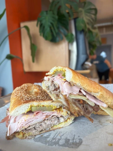 Traditional Cubano. Rosemary Cotto ham, roasted pork shoulder, Swiss, seeded and yellow mustard.