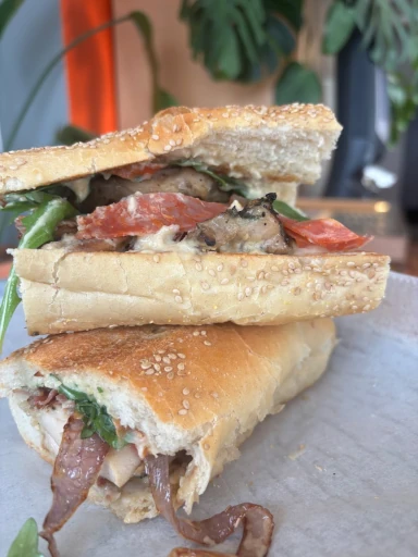 Seared mortadella, cotto ham, pepperoni, hot soppressata, pepper hash, red onion, lettuce tomato onion, balsamic vinaigrette, long seeded roll.